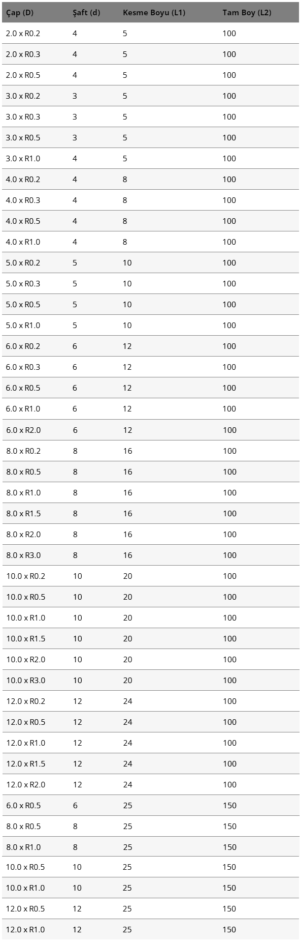 Karbür Parmak Frezeler